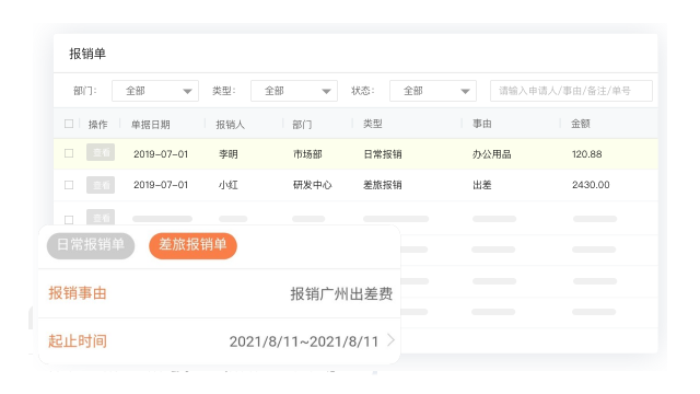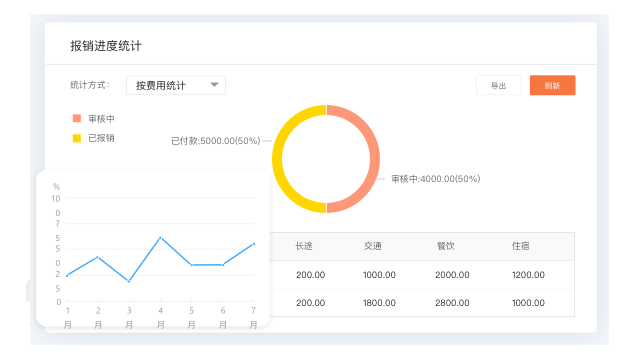 费用支出、报销进度可视化展示,实时洞悉企业费用情况,降低企业成本